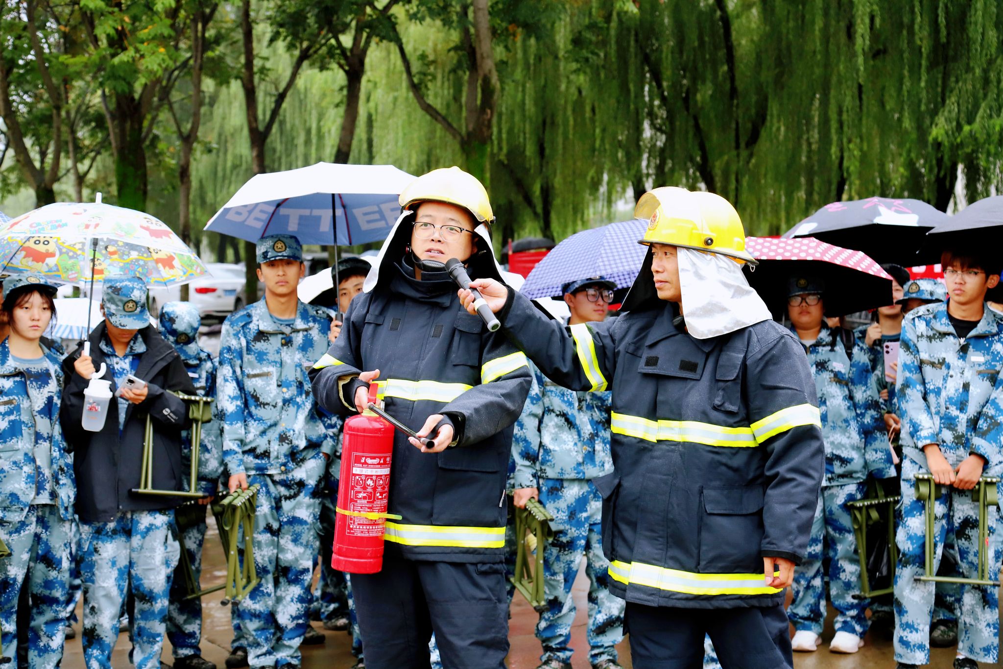 为深入贯彻落实“安全第一课”的校园安全理念,切实提升2025级新生的消防安全意识与应急处置能力,9月22日下午,保卫处联合英文学院“咏安”辅导员工作室开展2025级新生代表消防演练活动,通过“理论讲解+实操体验”的沉浸式学习,为平安校园建设打下坚实基础。